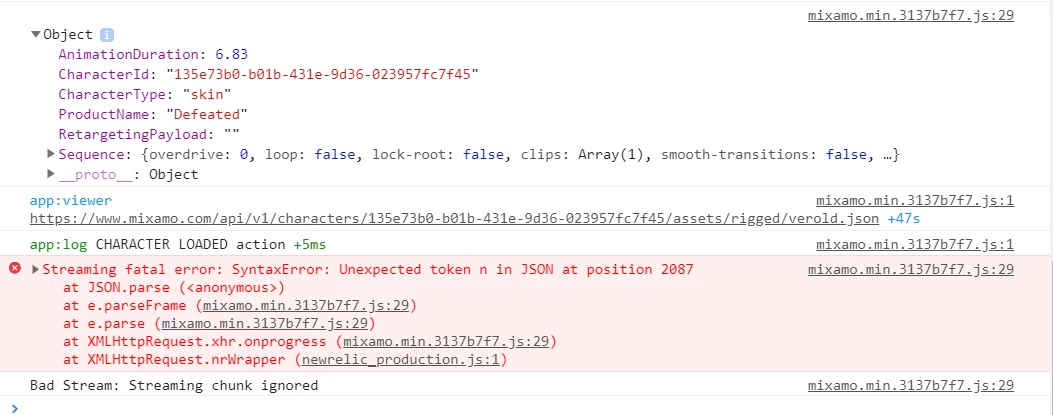 In the Chrome console log, I see:
