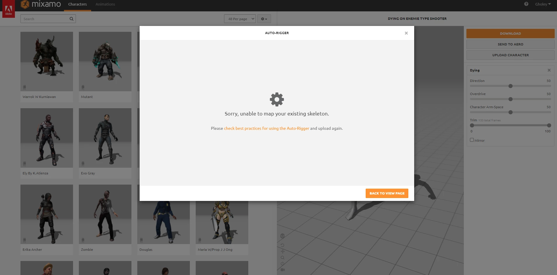Hey. I keep getting this error whenever I try to import my character that I made in to Mixamo. I never used to get this error before, and the model i am importing does not have a skeleton. I have attached a screenshot of the error. Also the file extension for the model is .fbx