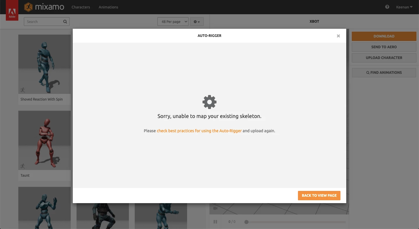 when i try uploading a character, it says "sorry, unable to map your existing skeleton."