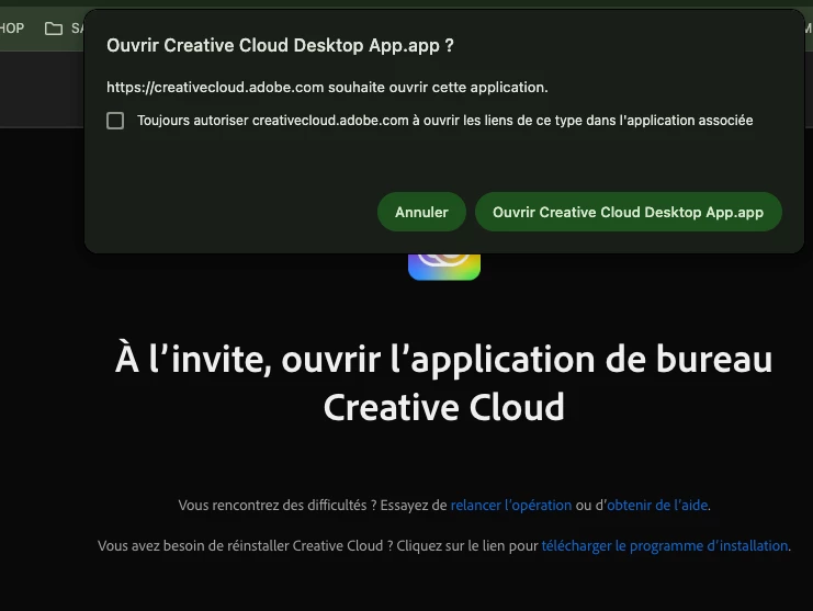 si je clique sur ouvrir l'application je retourne au portail comme d'habitude