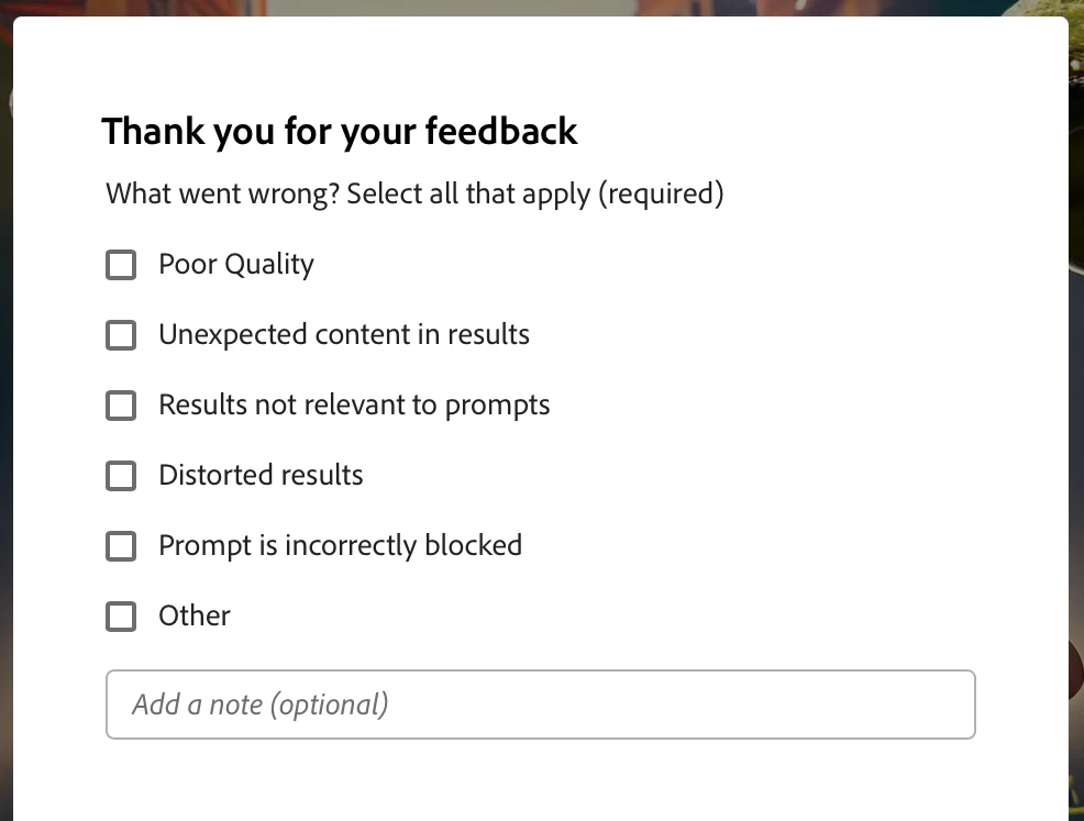 Adobe's AI version of prompts for:
