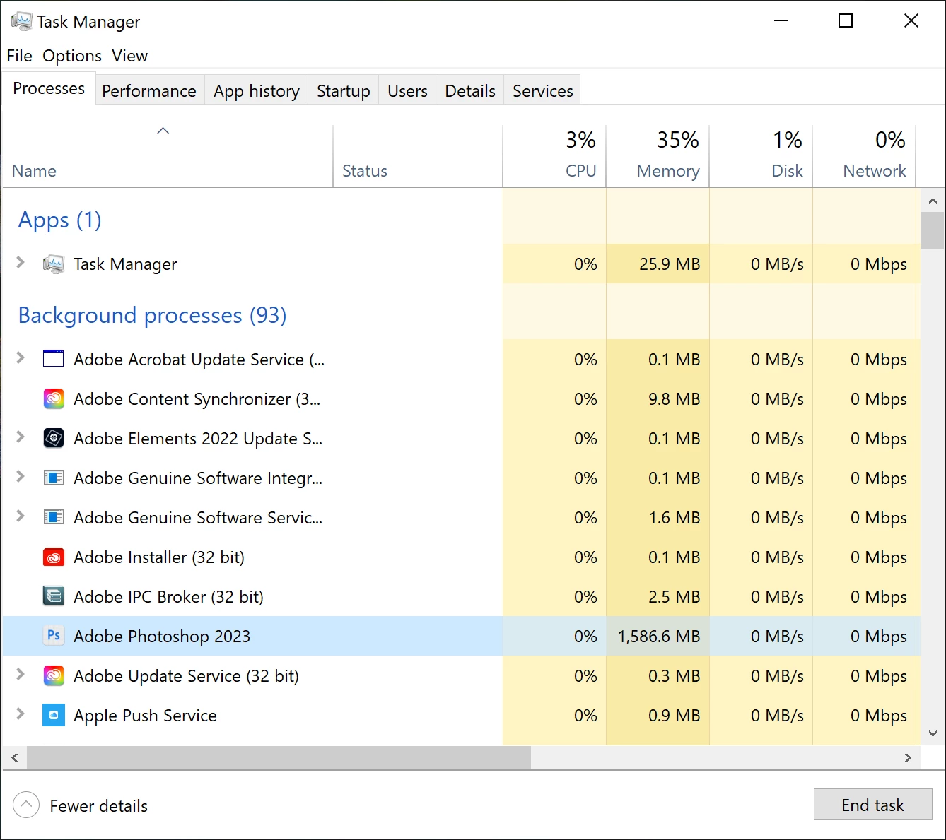 After exiting the beta version you can't open regular photoshop or restart the beta version. The Adobe Photoshop 2023 process under Apps while running photoshop is moved to the Bacground Processes and that prevents a launching either version of photoshop until that process is killed using task manager.