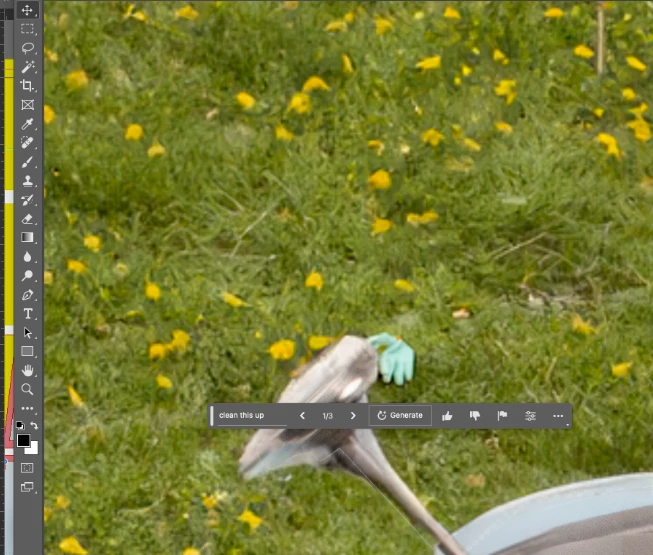 I wanted the corner of my object to look better on the bacckground- it was a bit cut and paste looking. I selected it ans wrote ' clean this up', and it literally put a rubber glove cleaning the