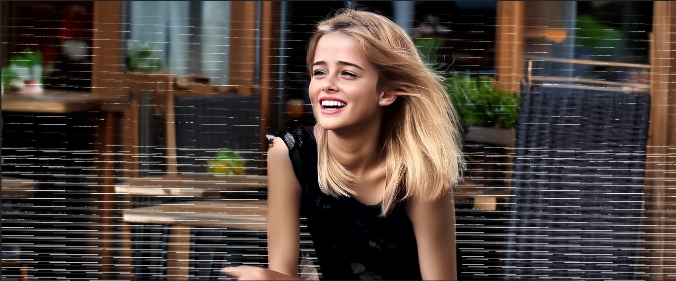 Here's an example the girl is the original object. "an outdoor cafe" was requested.
