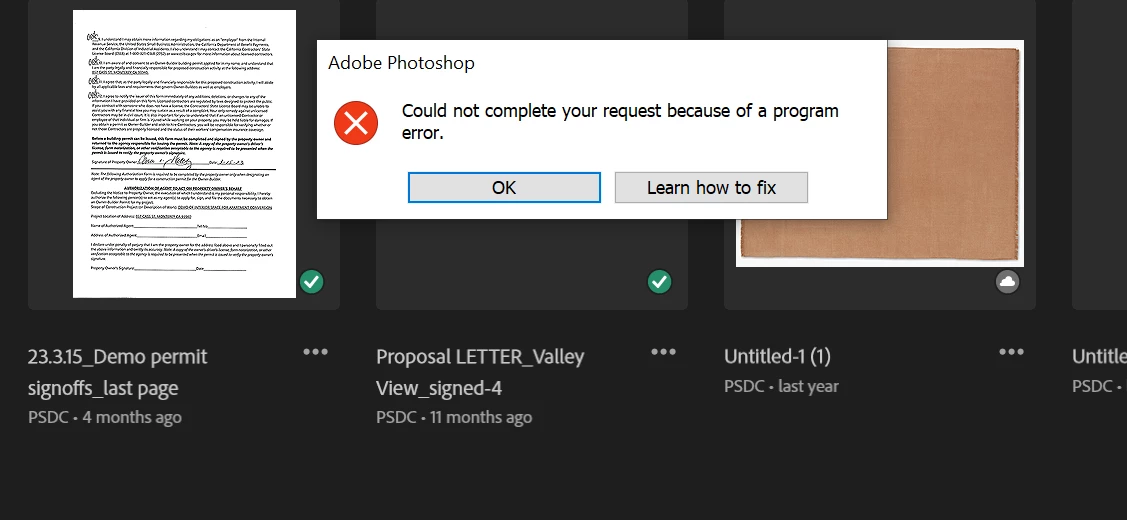 I can't open any files in photoshop on my desktop and it gives me this message: