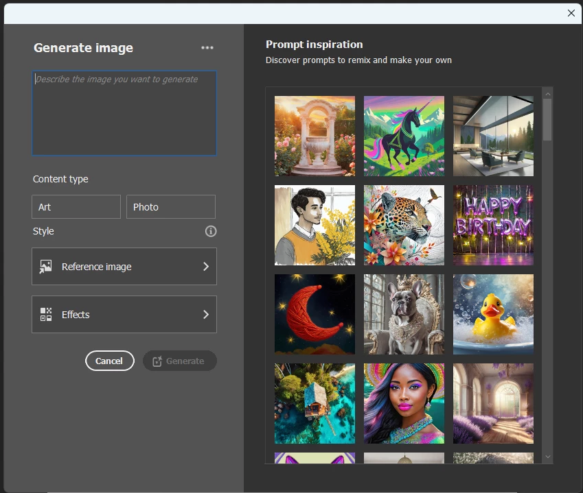 Edition > Générer une image.