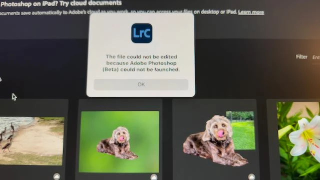 Attemped to 'Edit in' from Lightroom Classic (Version 12.4) to Photoshop Beta 25.1.0. After Photoshop Beta opened to the Photoshop Home screen, the file did not open immediatly. Per the stop watch on my phone. one minute and 43 seconds later the error message 'The file could not be edited becasue Adobe Photoshop (Beta) could not be launched' appeared. (See attached file) I then clicked on the 'OK' button in the error message. 10 seconds later, a .tif thumbnail of the image appeared in the filmstrip bar of Lightroom. A few seconds later the same .tif image opened in Photoshop Beta, allowing me to edit.