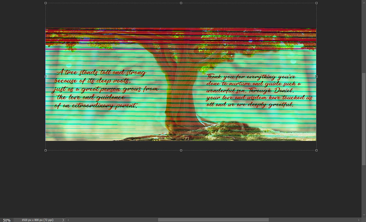 I started with 1920 x 1080 at 72 px RGB Image and selected Image:>imageSize... and entered 800px for my height, letting it calculate the proportional width and the picture came out with severe color problems and horizontal banding.