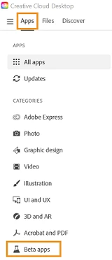 Do not see Photoshop Beta app tab