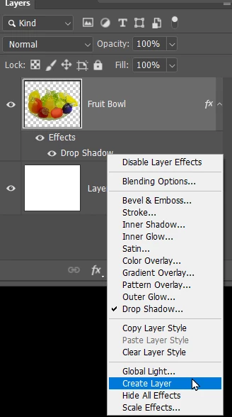 We can overcome this by right clicking with the cursor above the effect, and choosing Create Layer