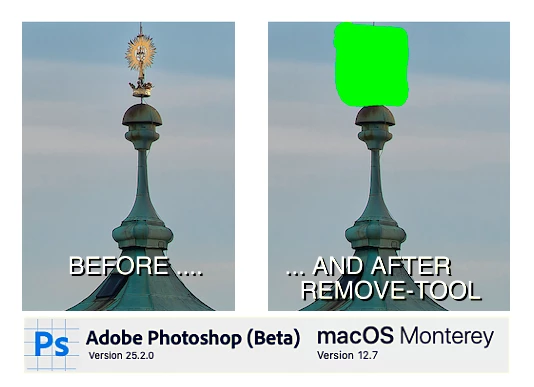 Blereits seit mehreren Updates für >PS Beta< funktioniert das Entfernen-Werkzeug nicht mehr (auch nicht unter v. 25.2.0): statt Entfernung erscheinen grelle (Falsch-)Farben. - Tutorials und Helpfunktion haben keine Klärung gebracht. - Ich arbeite auf Mac OS Monterey 12.7.