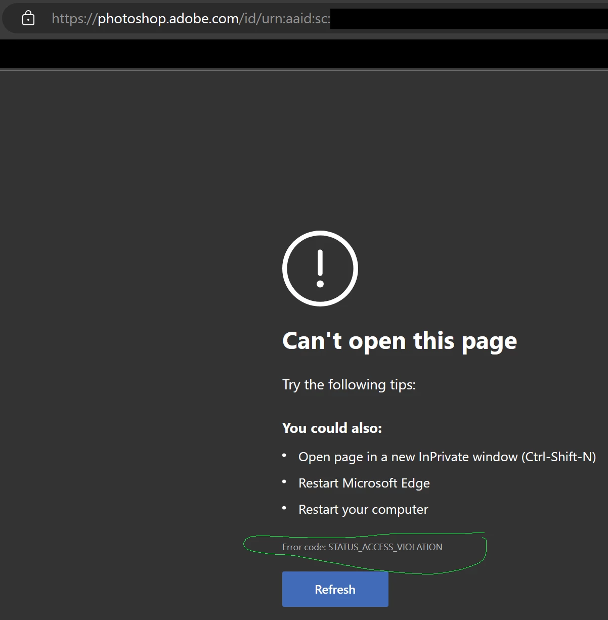 Error code: STATUS_ACCESS_VIOLATION with Photoshop on the Web (Beta)