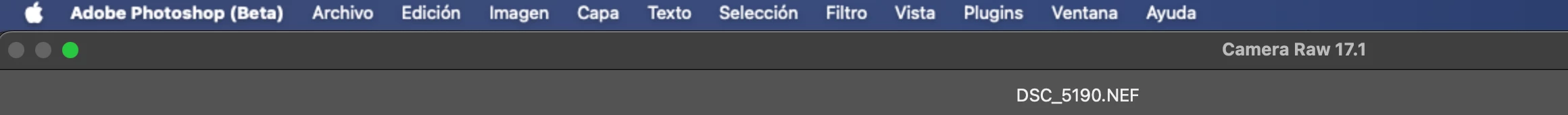 Cuando se abre el filtro camera raw la barra de menú se desplaza un poco para arriba y se deshabilita, toca reiniciar el programa para que vuelva a funcionar. Pasa lo mismo con la version 26, 25.12. en la 24 no pasaba eso.