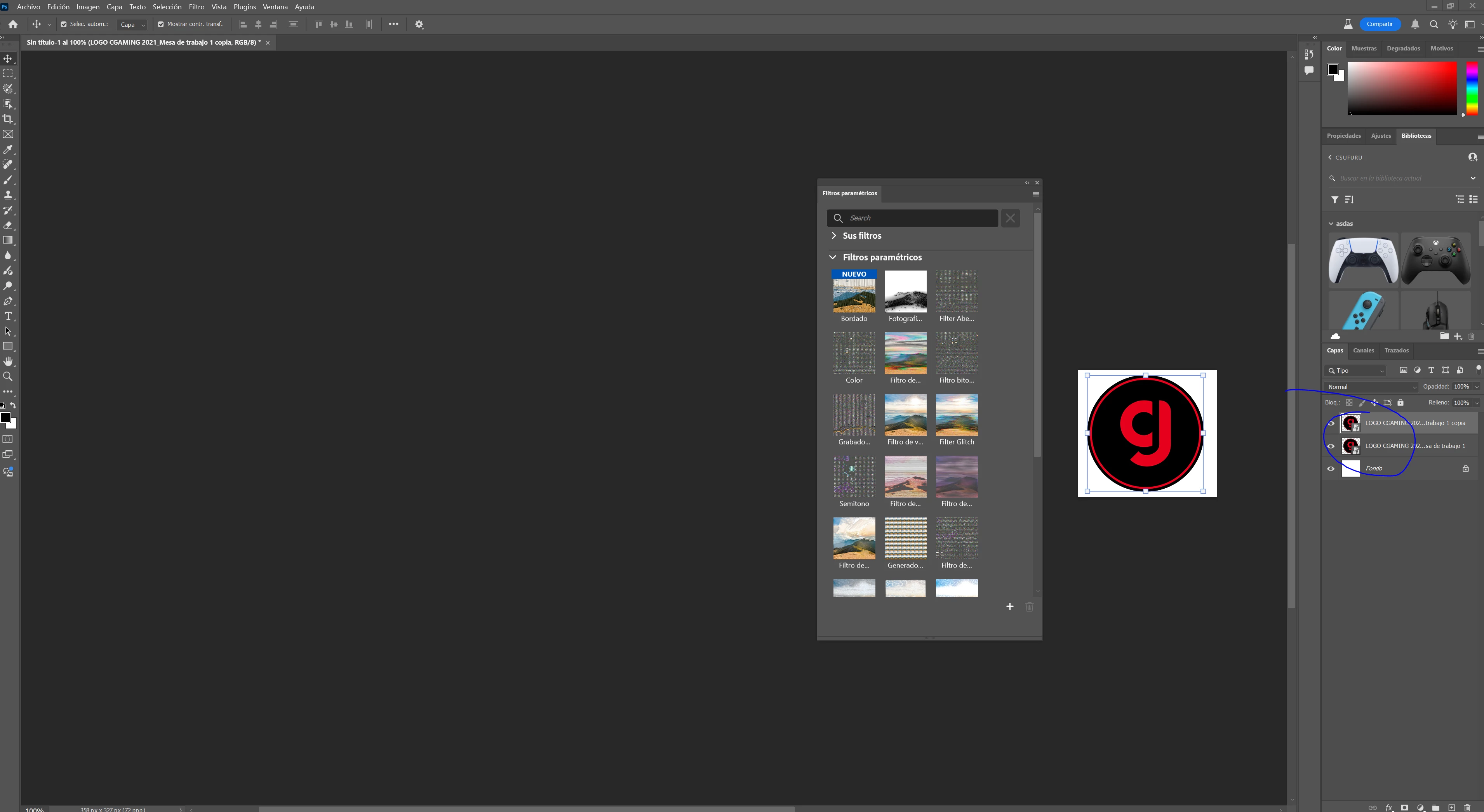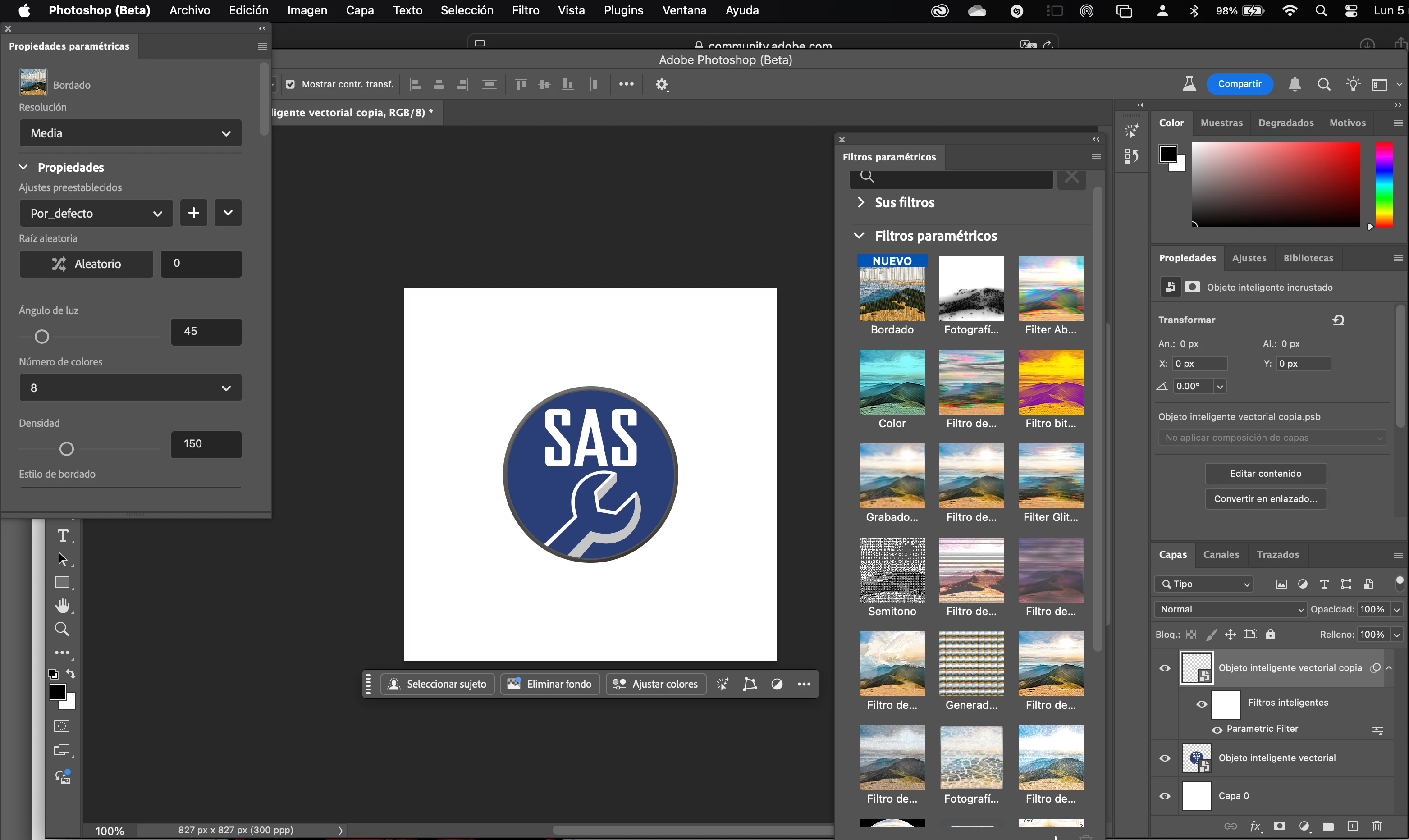Asi es no me sale el panel de " filtros paramétricos" al darle el efecto. Lo unico que me da es que me duplica la capa en objeto inteligente. pero no no aplica el efecto.
