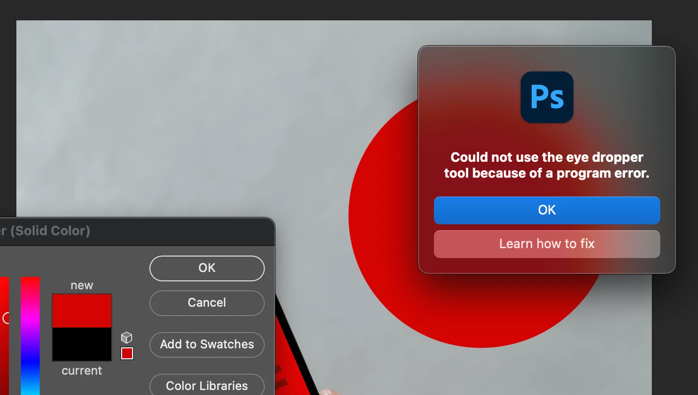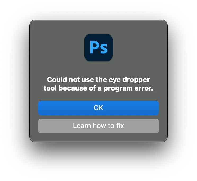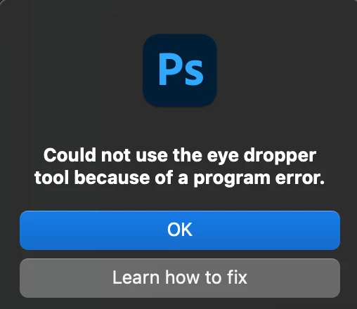 Eye dropper error: Could not use the eye dropper tool because of a program error