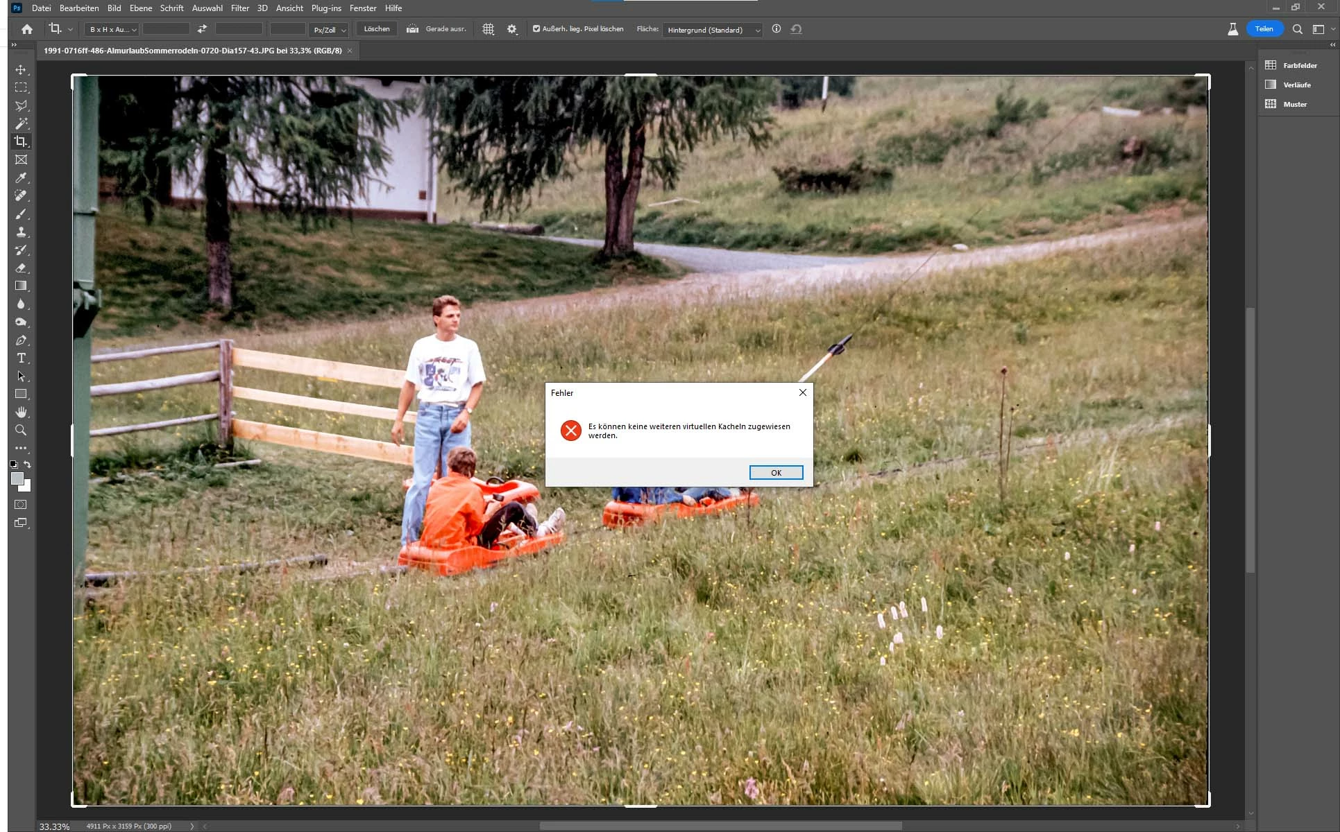 Nach Laden eines jpg-Bildes und Aufruf von Filter - Objektivkorrektur kommt reproduzierbar und jedes Mal die Fehlermeldung "Es können keine weiteren virtuellen Kacheln zugewiesen werden."