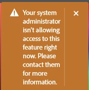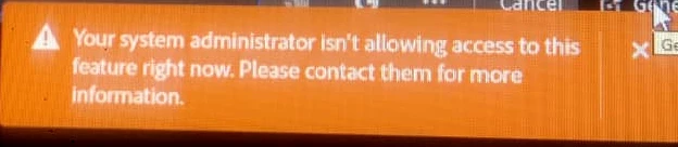I'm trying to use content aware fill with Nana banana, but it does nothing and the pop up message is saying: "Your system administrator does not currently allow access to this feature.