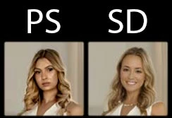 I have a comparrison here between Photoshop and Stable Diffusion. To be fair my SD setup is pretty detailed and so I can get very good realistic people, but with photoshop I don't know what to do.