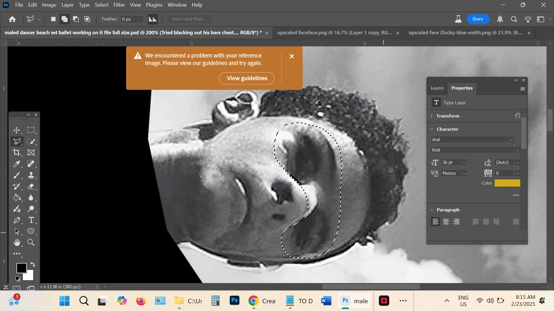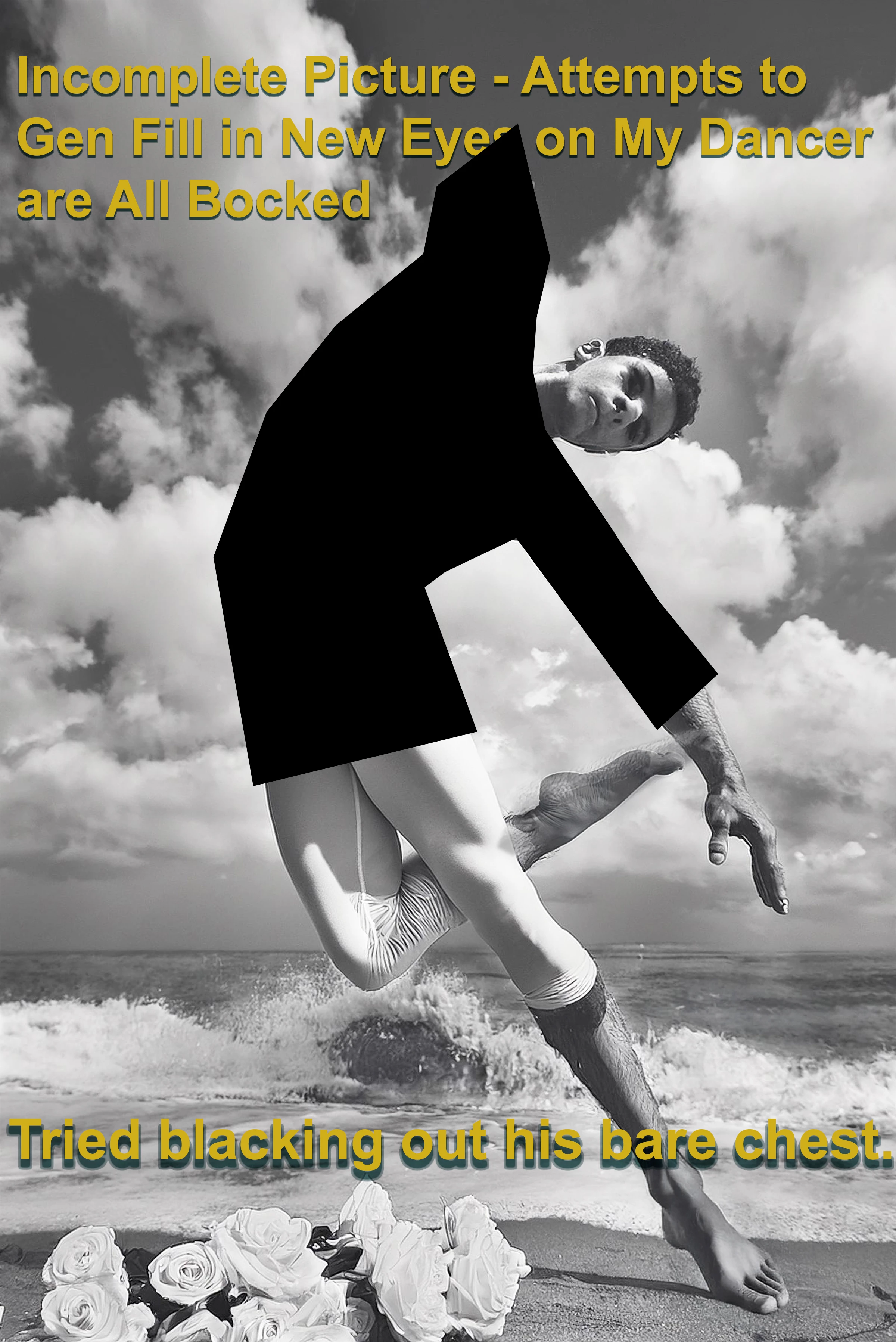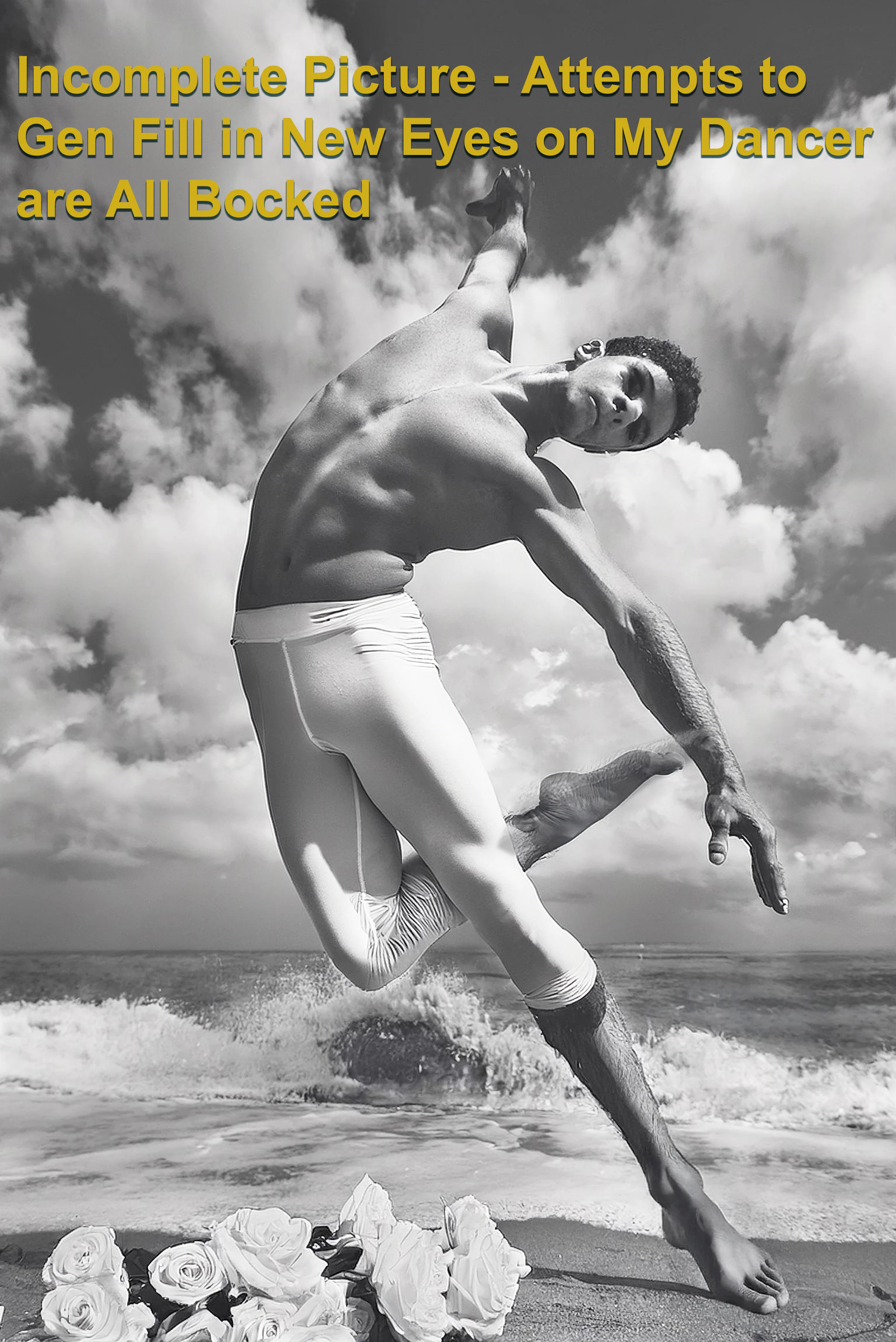 I've tried dozens of ways to add new eyes to a male ballet dancer's face with generative fill and no matter what I try a message pops up telling me I am violating the guidelines. I'm at my wits end. I'll list what I've tried below and upload some images.