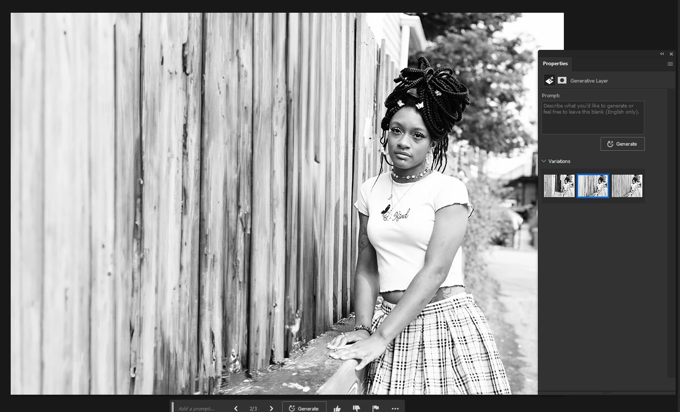The process is simple: make a selection – any selection, then tell Photoshop exactly what you want placed there. The GenAI models will return an object or scene you described. You can: