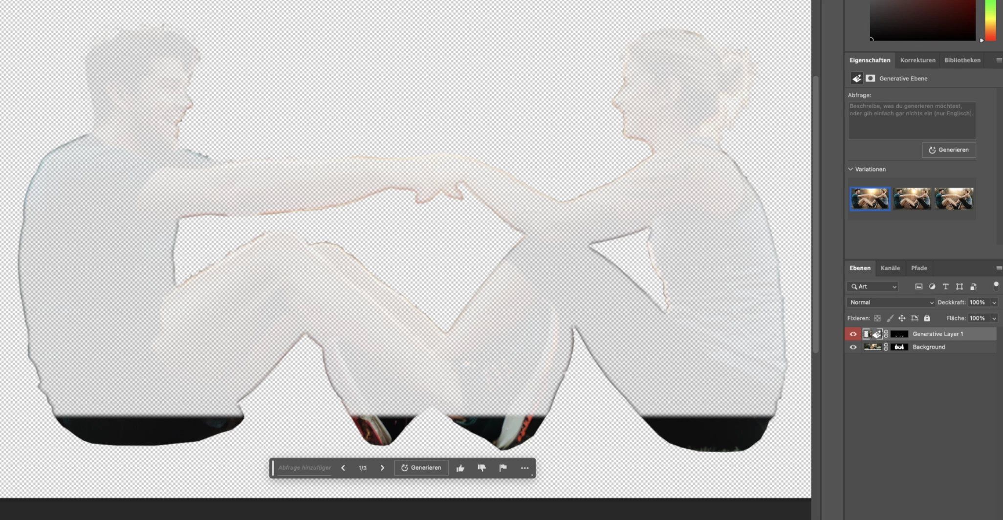 The process is simple: make a selection – any selection, then tell Photoshop exactly what you want placed there. The GenAI models will return an object or scene you described. You can: