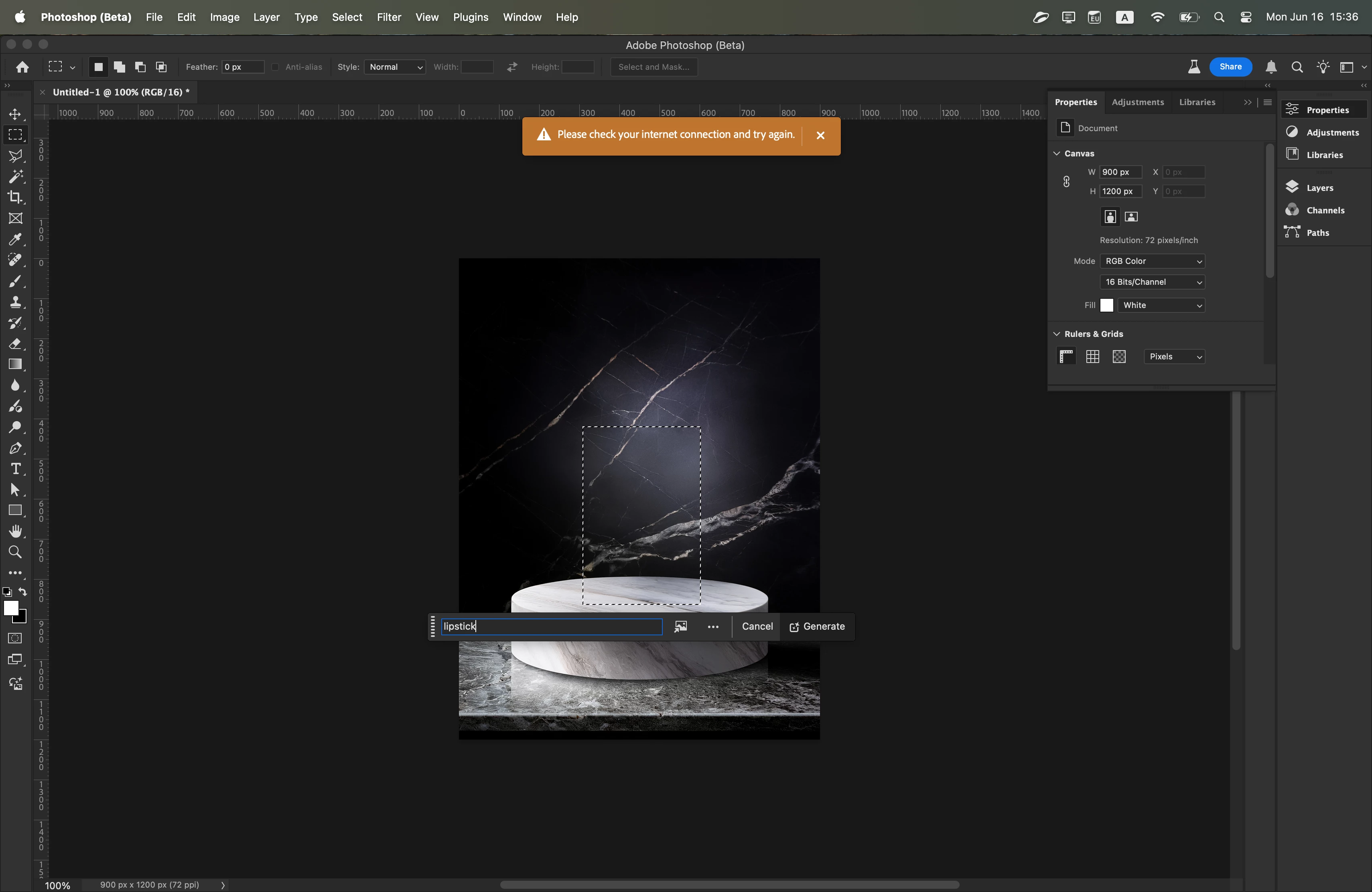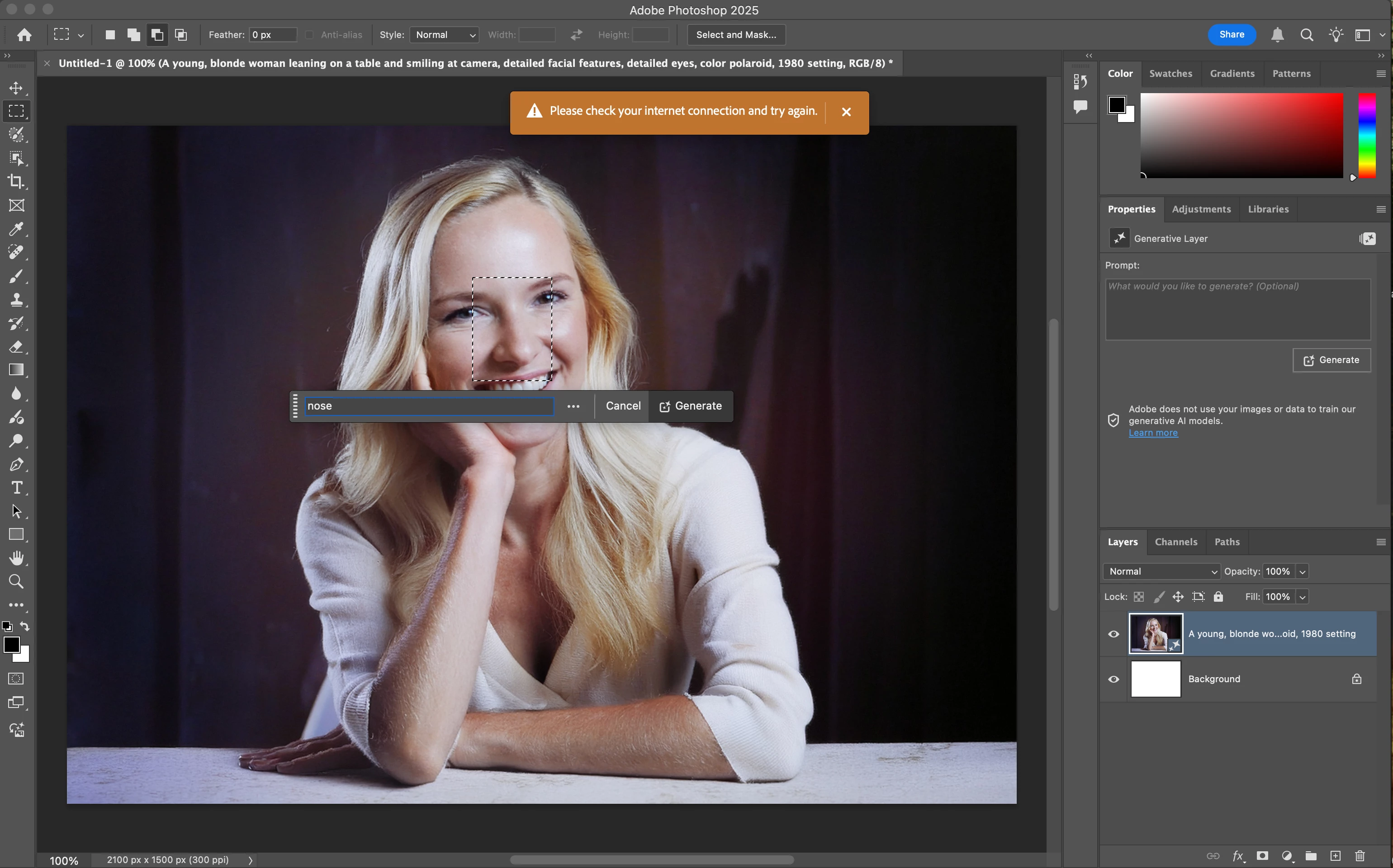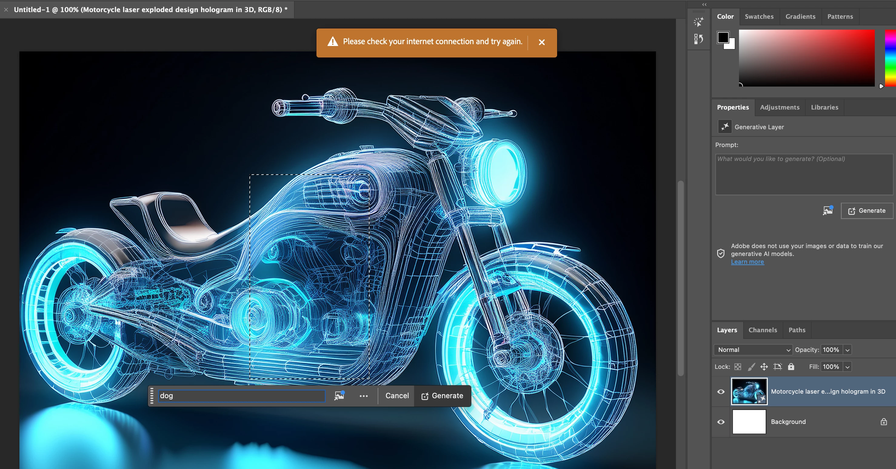 "Please check your internet connection and try again." appears every time trying generative fill.