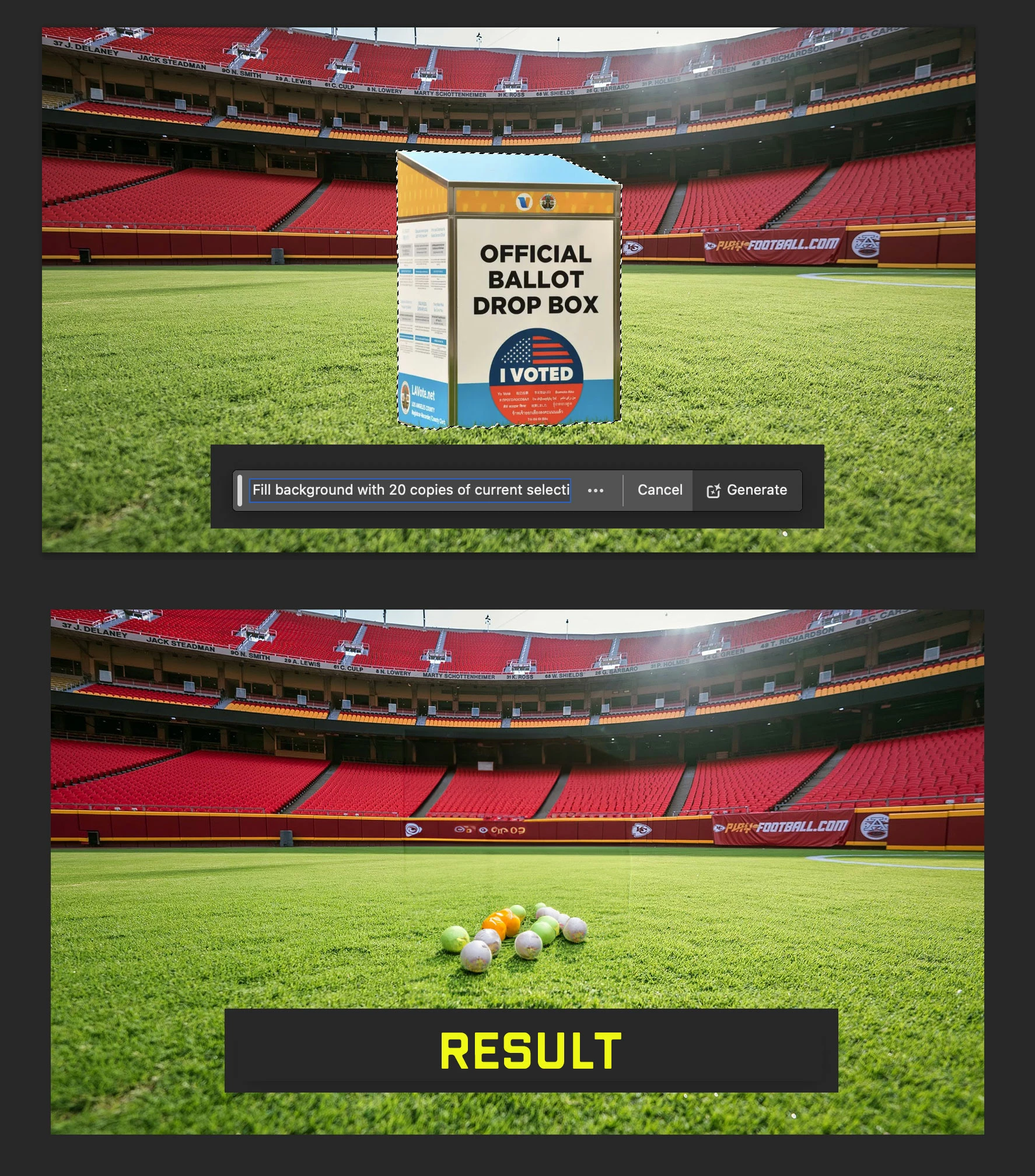 I am not asking Generative Fill for an "array", "grid", "table" or anything else that would require rows or columns. GF does recognize: