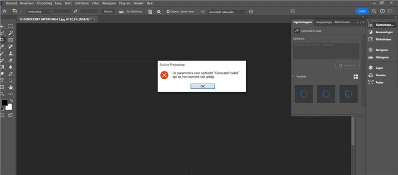 "the generative fill parameters are not valid"