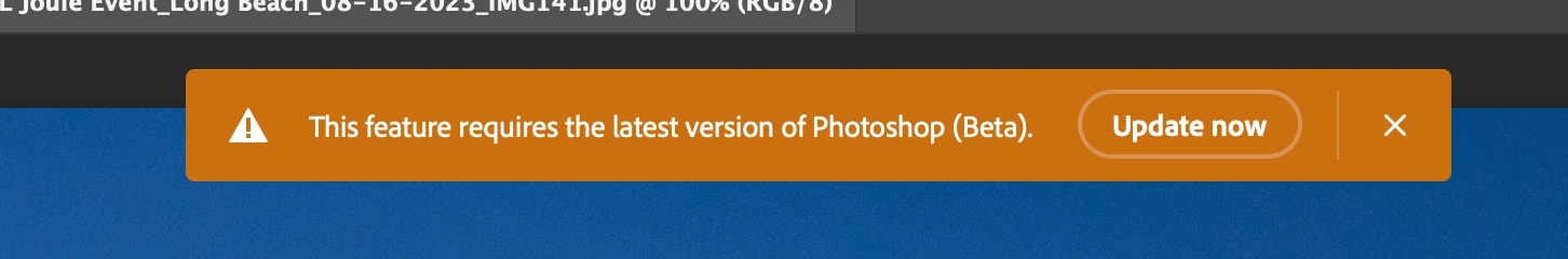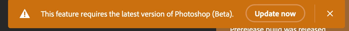 Generative fill wont work in Photoshop Beta 24.7, and asks to upgrade