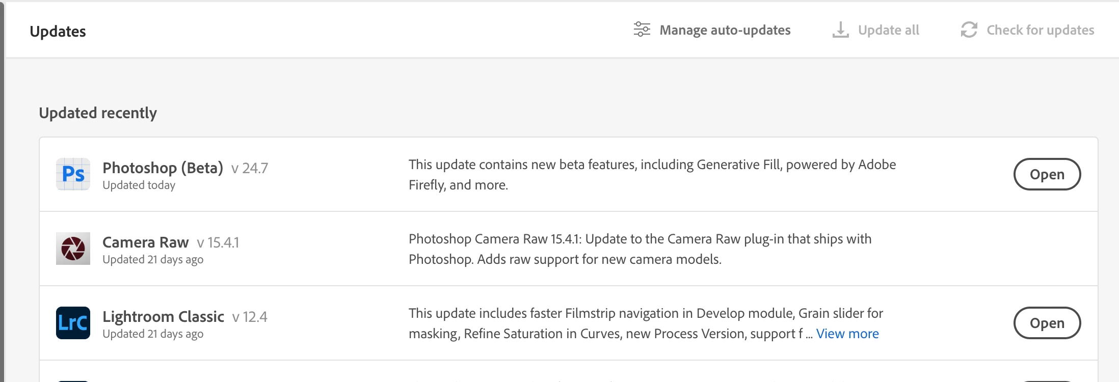 Now, everytime I try to use generative fill, Photoshop Beta tells me to upgrade - "This feature requires the latest version of Photoshop (Beta)". Generative fill was working fine until a few days ago on version 24.7.