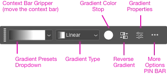 To test out the Gradients Context Bar, make sure you have Context Bars enabled (Window > Contextual Task Bar or right click on canvas areas > Show Contextual Task Bar).