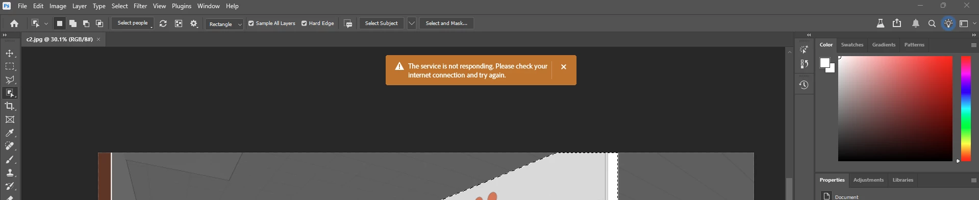 during the generative fill experiment the yellow colour warning pop out comes and , i can't explorethe features