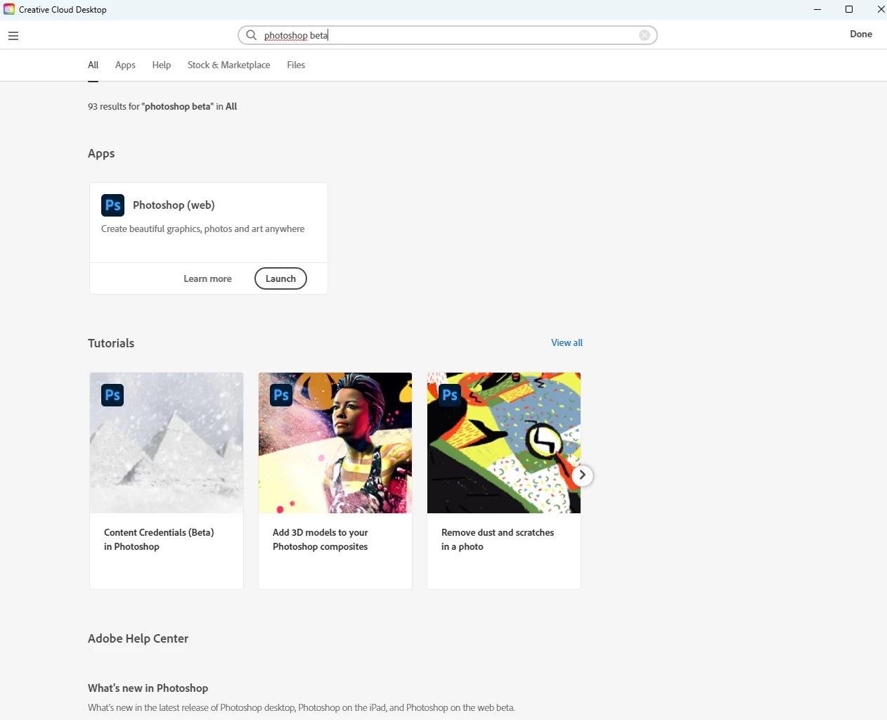 When I search for Photoshop Beta, nothing show up as well.