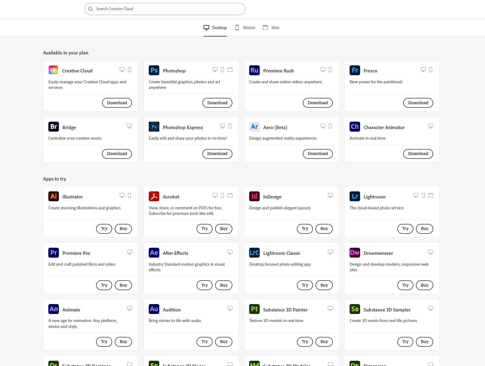 I tried using the cleaner tool and uninstalled everything, restarted the computer and tried re-installing Creative Cloud, but the beta app tab still isn't there. What I don't understand is that even on the browser, Photoshop Beta isn't included in what's available in my plan.
