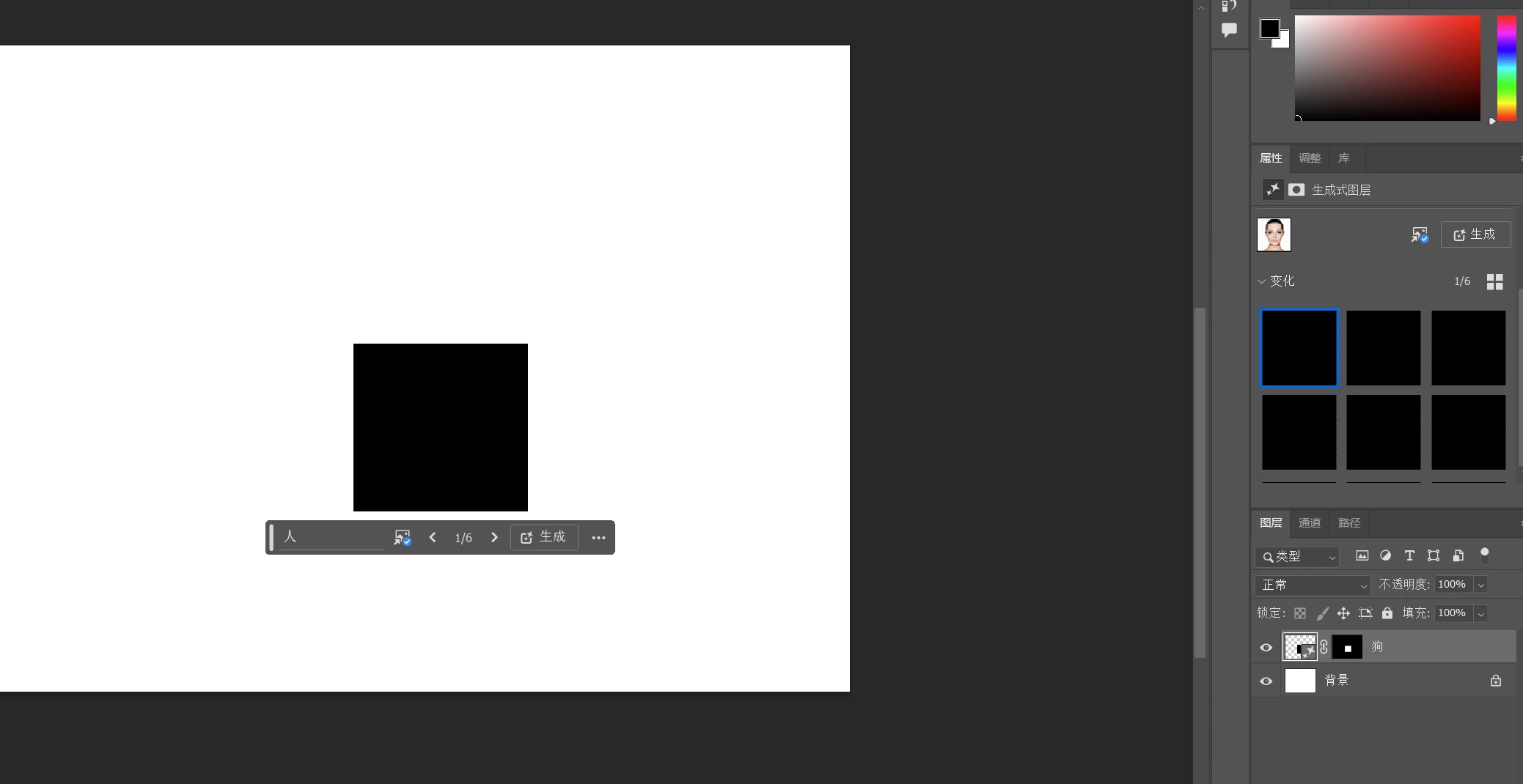 "I don't know why my Photoshop beta program isn't able to use generative images; it just shows these black squares. However, my Photoshop 2024 works fine, though it's also a bit slow in generating. But hey, at least I've got enough points!"