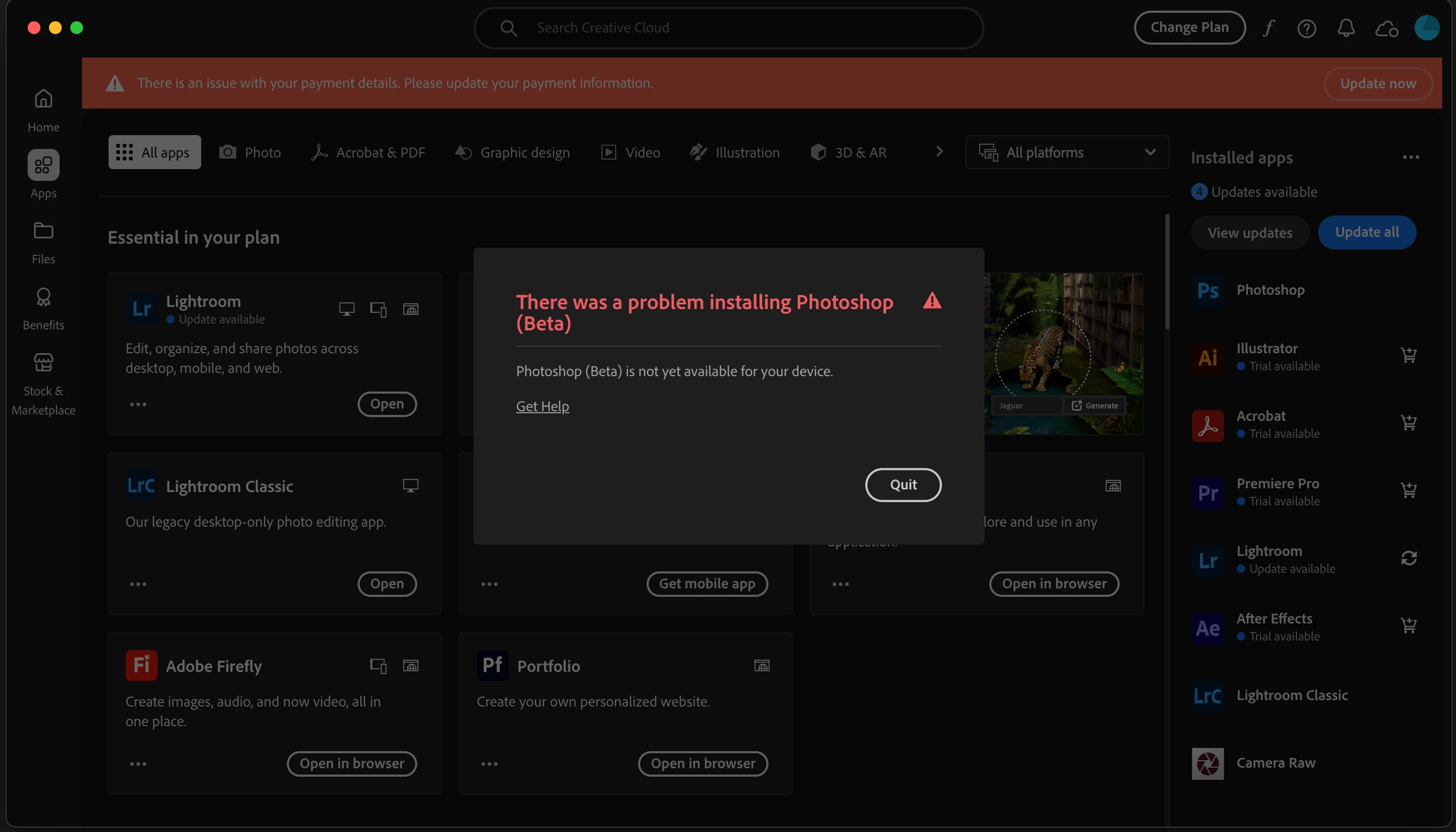 I'm using Adobe Creative Cloud version 6.7.0.278 running on a Mac using Sequoia 15.6.1.