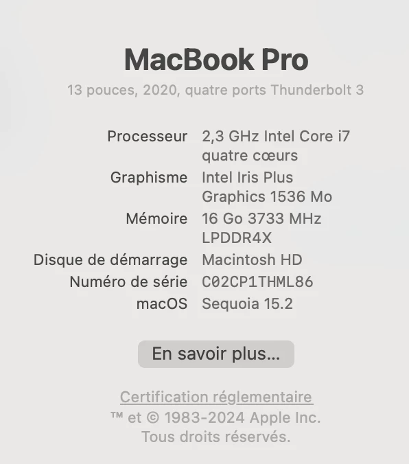 16Go de Ram sous Sequoia .