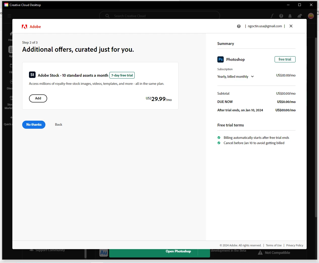 Tôi muốn dùng thử Photoshop Beta mà không tốn tiền để mùa giải sợ không thể sử dụng được! có phiên bản dùng thử 7 ngày nhưng tôi không cài đặt được, yêu cầu cài đặt iStock trong khi tôi không cần iStock, bạn có thể hướng dẫn tôi không