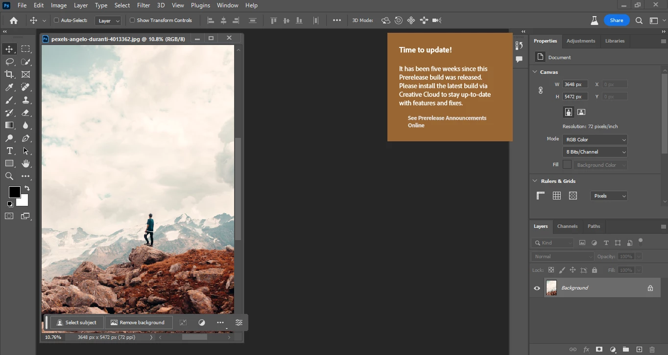 TIME TO UPDATE POP-UP SCREEN ON THE RIGHT SIDE OF PHOTOSHOP 24.5 DOESN'T GO AWAY. PLEASE HELP ME REGARDING THIS