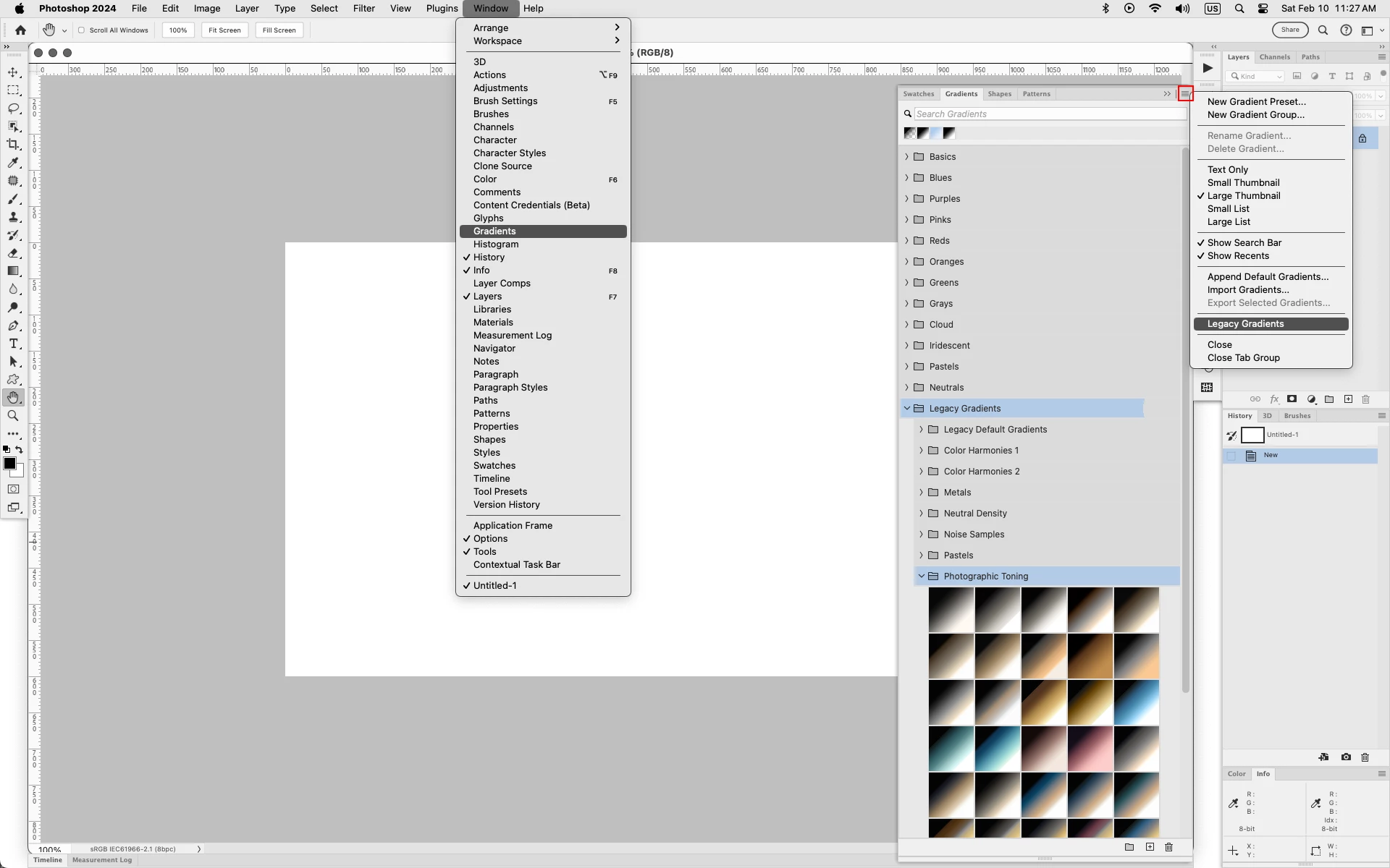 Hi, I can't find Legacy Gradients and Photographic Toning in the settings. How can I fix this?