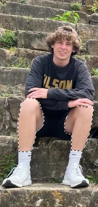 7. Alternatively, you can hover your cursor over the image, to see a preview the various segmented areas associated with a person (the legs on the man are detected - shown by a pink overlay). Click on canvas to make a selection.