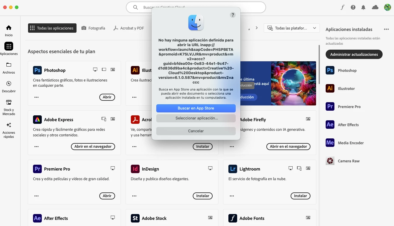Al momento de querer instalar Photoshop Beta en MacOS me aparece el siguiente error: