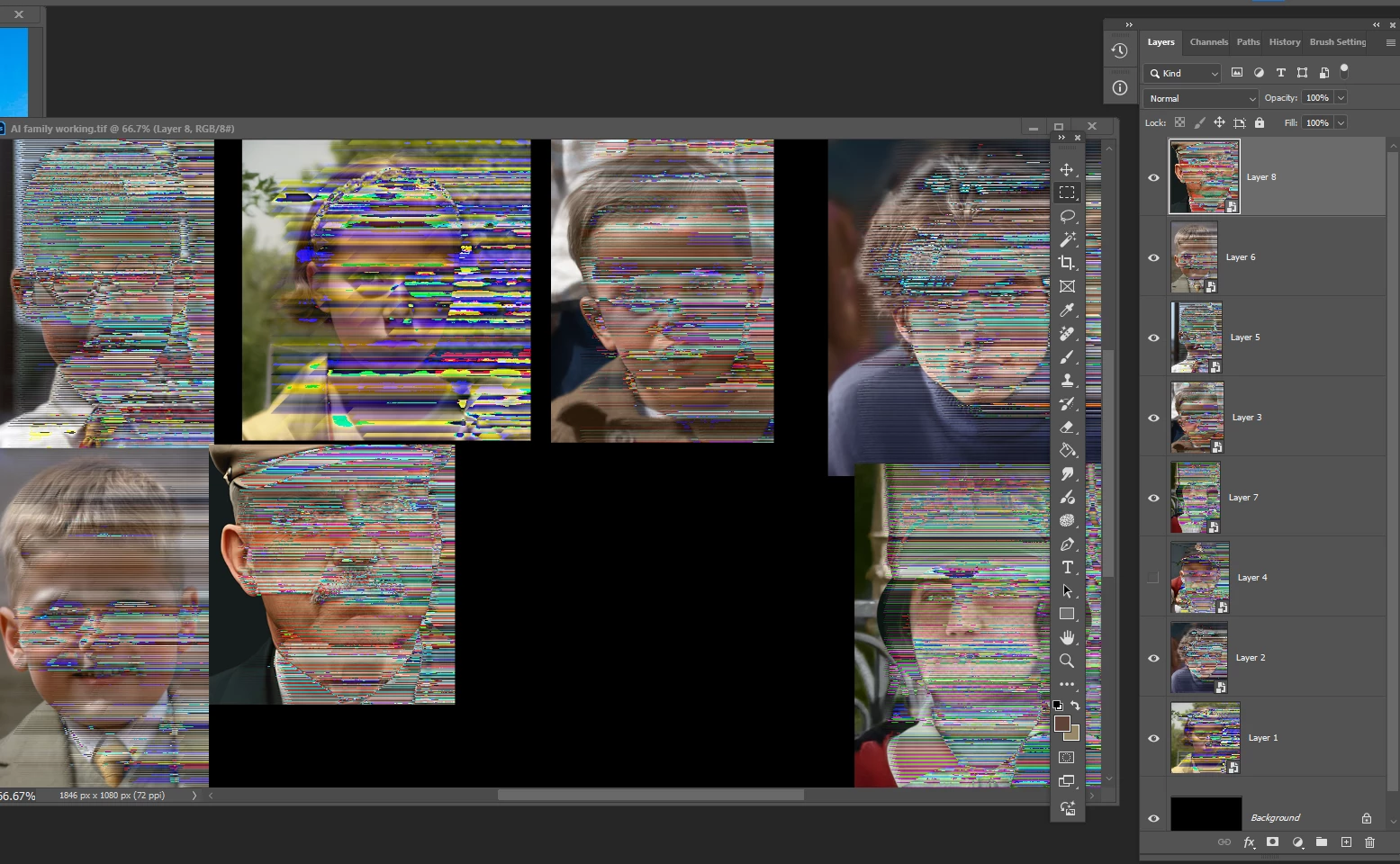 Opening a saved .TIF file in Beta brings up a drastically corrupted file. In this example you can see the file opened in Photoshop on the top and in PS Beta on the bottom. I was hoping that the latest update would have changed this, but it has not. This happens for all .TIF files, not just this example.