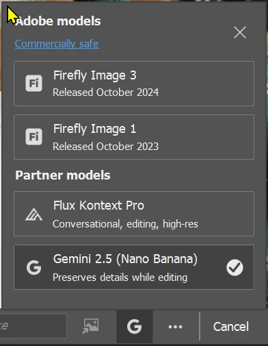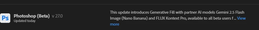 I just installed the latest Photoshop Beta (27.0), the notes for which say that the Nano Banana image model is included. But when I attempt to use Generative Fill, the only models available in the dropdown are Firefly models 1 & 3 - no Nano Banana.