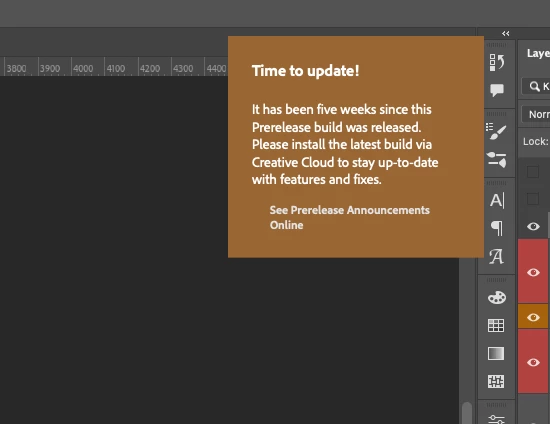 I opened Photoshop Beta this morning and didn't realize that it auto-updated to v25.0 and showed this error message.