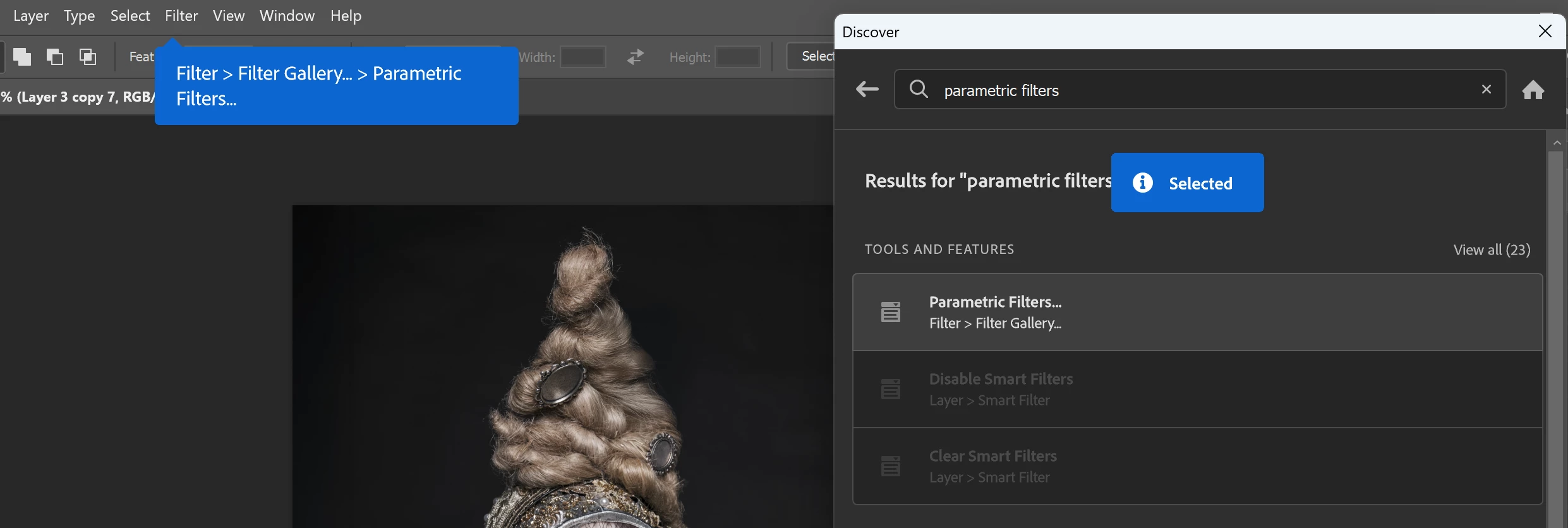 I want to try the parametric filters and I can't find it.  (Screenshot below). I even tried to re-install Photoshop beta and achieved the same result.