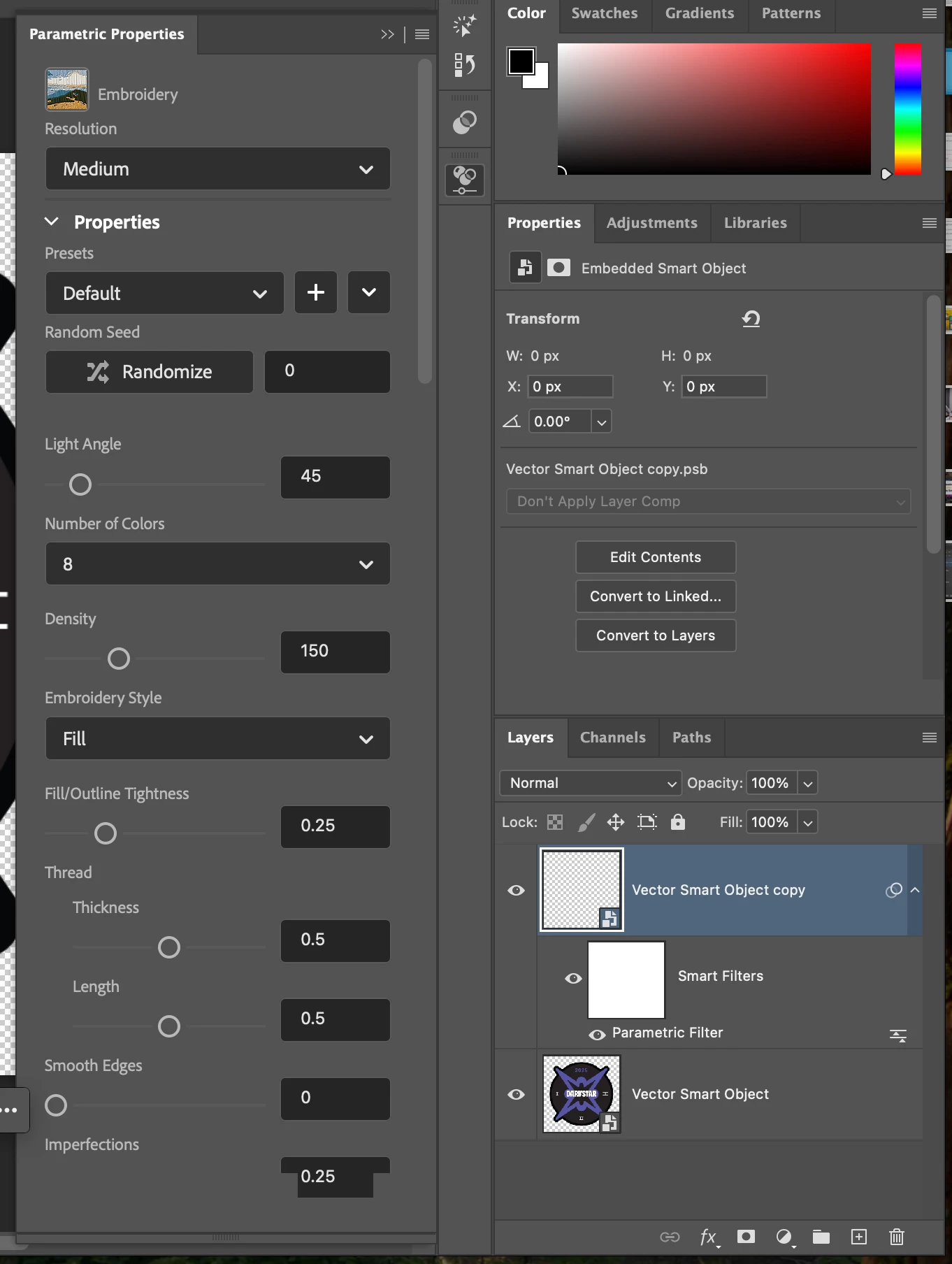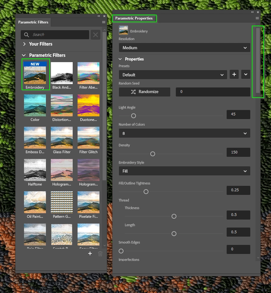 The parametric properties stays "blank" with the text: "Select a layer that contains a Parametric filter....".