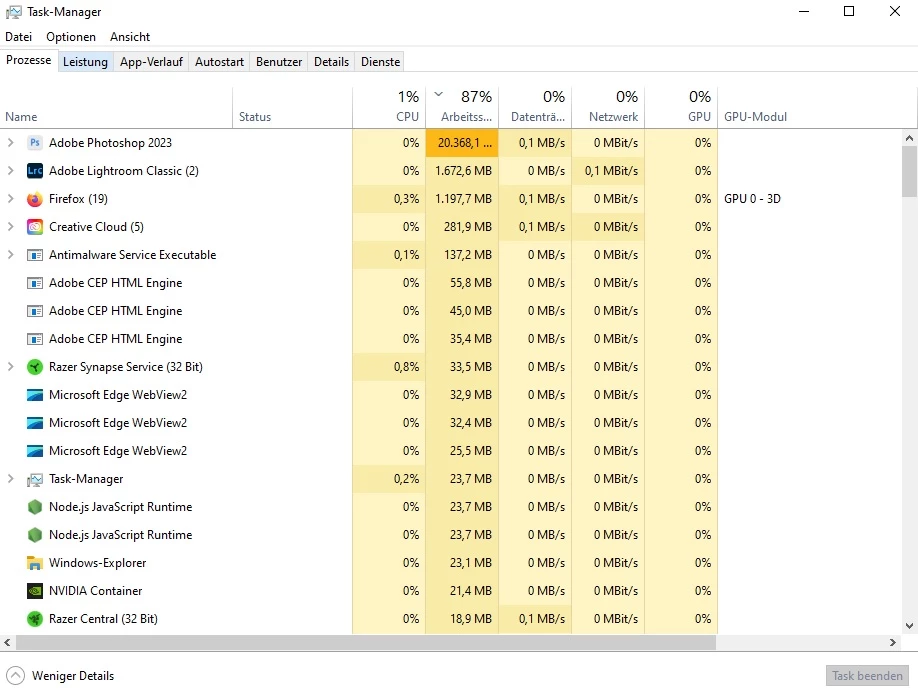 Ich habe vor nicht all zu langer Zeit mein Rechner von 16Gb auf 32Gb Arbeitsspeicher upgegradet, um das Problem mit Photoshop welches dann 13,xGb von den 16 verfügbaren während des Betriebs frisst.