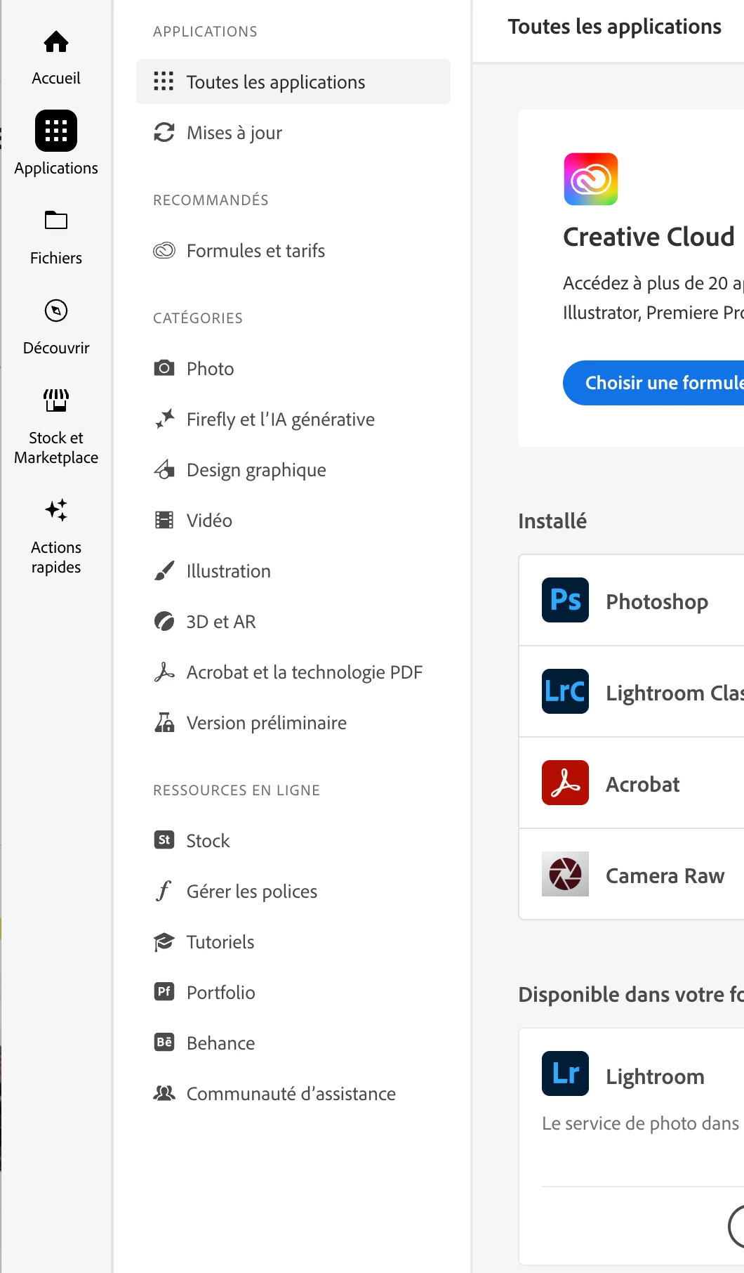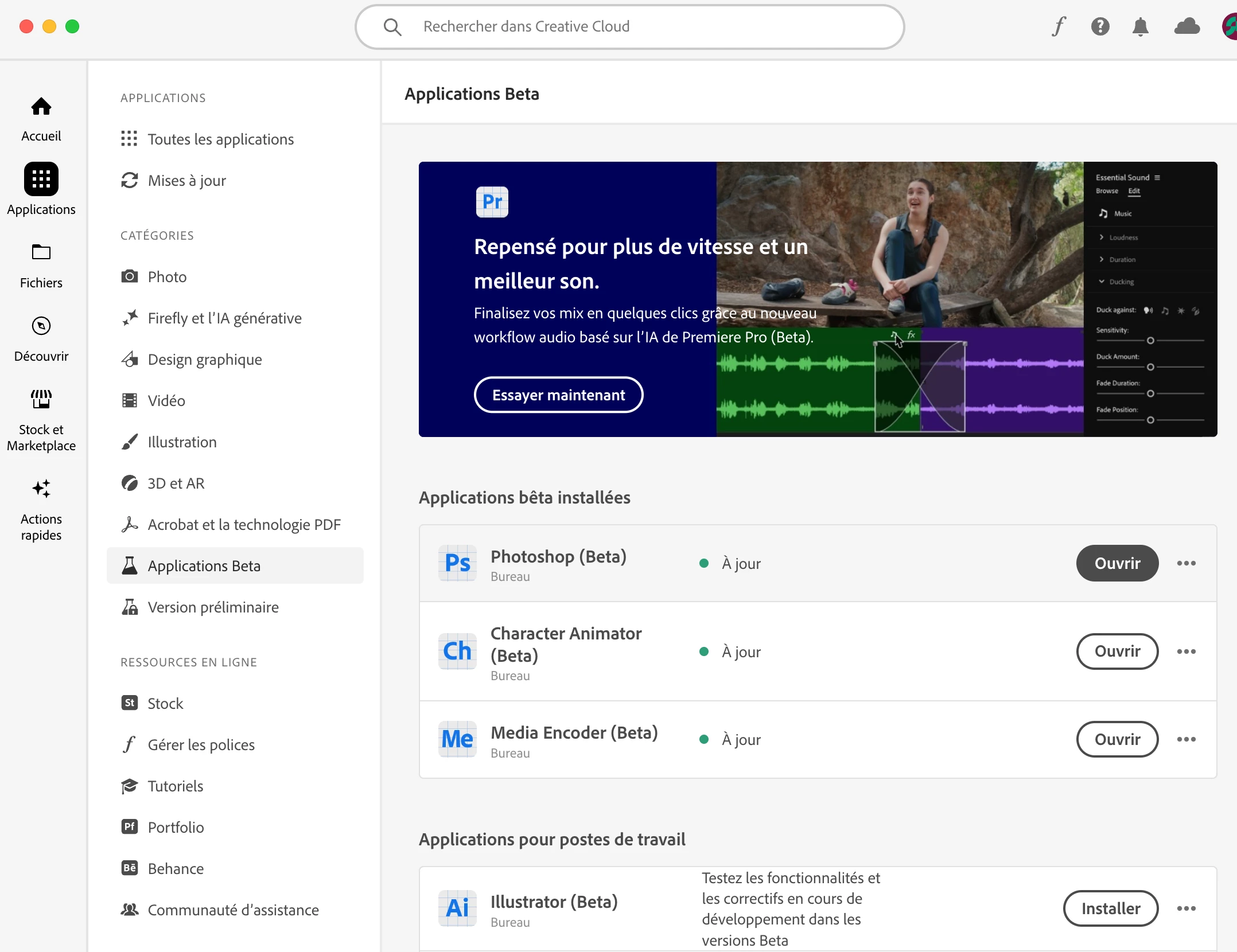 Photoshop Beat absent du panneau Creative Cloud