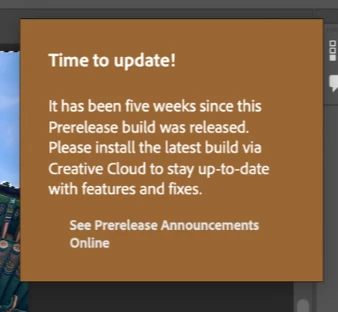 The beta version is for testing and reporting bugs before they go into the prerelease. Your version is 5 weeks old and needs to be updated. If you are looking for Generative Fill, it is in the released version 25.0. You can download it from the Creative Cloud app with your paid subscription.